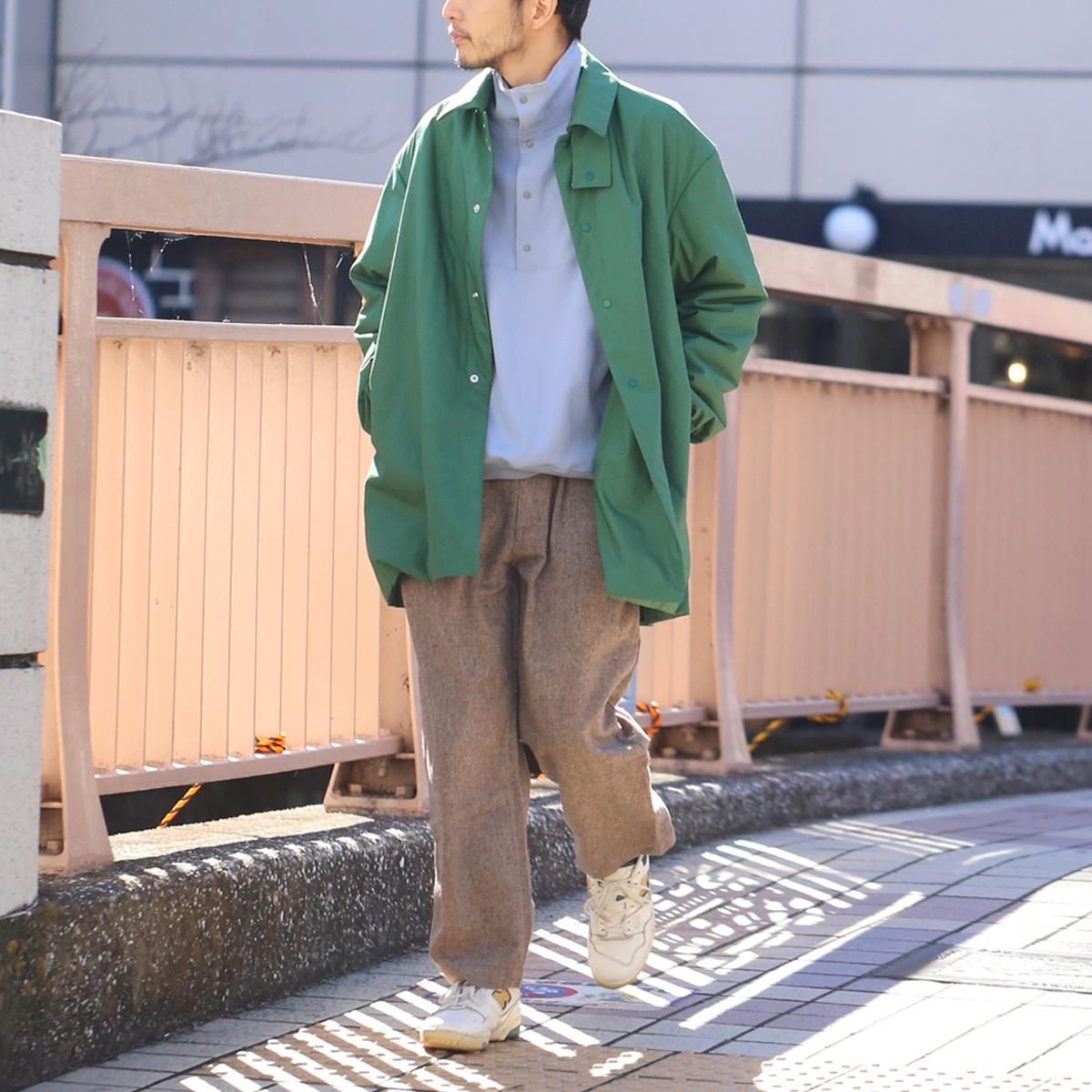意外にこういうアイテムって探すと少なく、僕と同じように思っている方がいるのではと。真冬は厚手のニットやスウェットを、春秋はシャツや薄手のカットソーをインナー調整することで、色々なシチュエーションに対応できるアウターです。また綿100%のタイプライター生地を使用し、長いシーズン着用できる見た目も兼ね備えています。