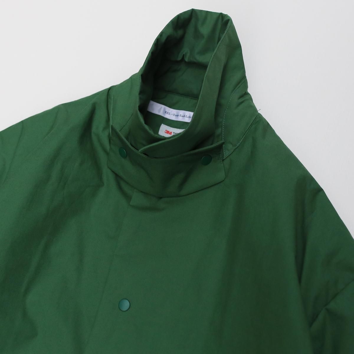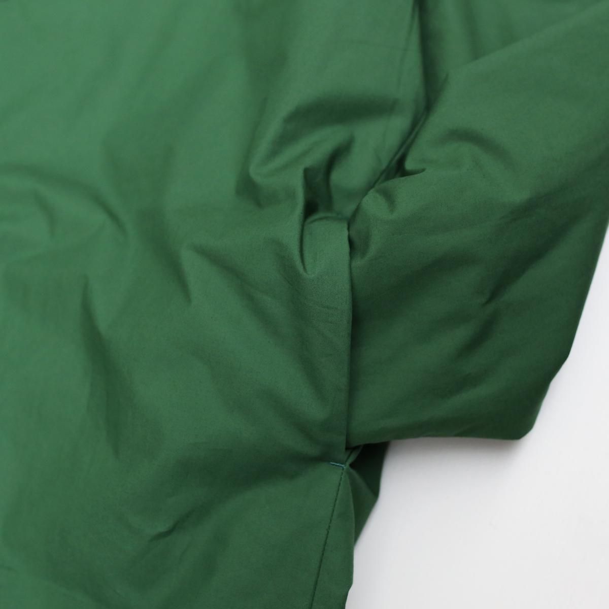 今回はボリュームを抑えるため、中綿は目付け40g/m2の薄手のシンサレートを使用。米3M社のシンサレートは、ポリエステル繊維を羽毛並みに極細化し、内部にたくさんの空気を含ませることで、ダウンの半分程度の厚さで同等の断熱効果を得ることができる優れた素材です。また無臭でアレルギー性物質を含んでないので身体にやさしいのも嬉しい特徴。嵩高保持に優れ、クリーニング等によってへたりにくく長く愛用してもらえます。僕自身もここ数シーズン、シンサレートのアウターを着用してきましたが、軽量かつ保温性の高さを感じてきました。