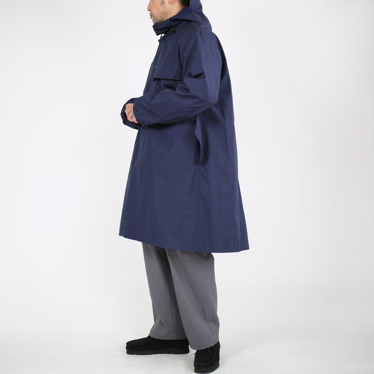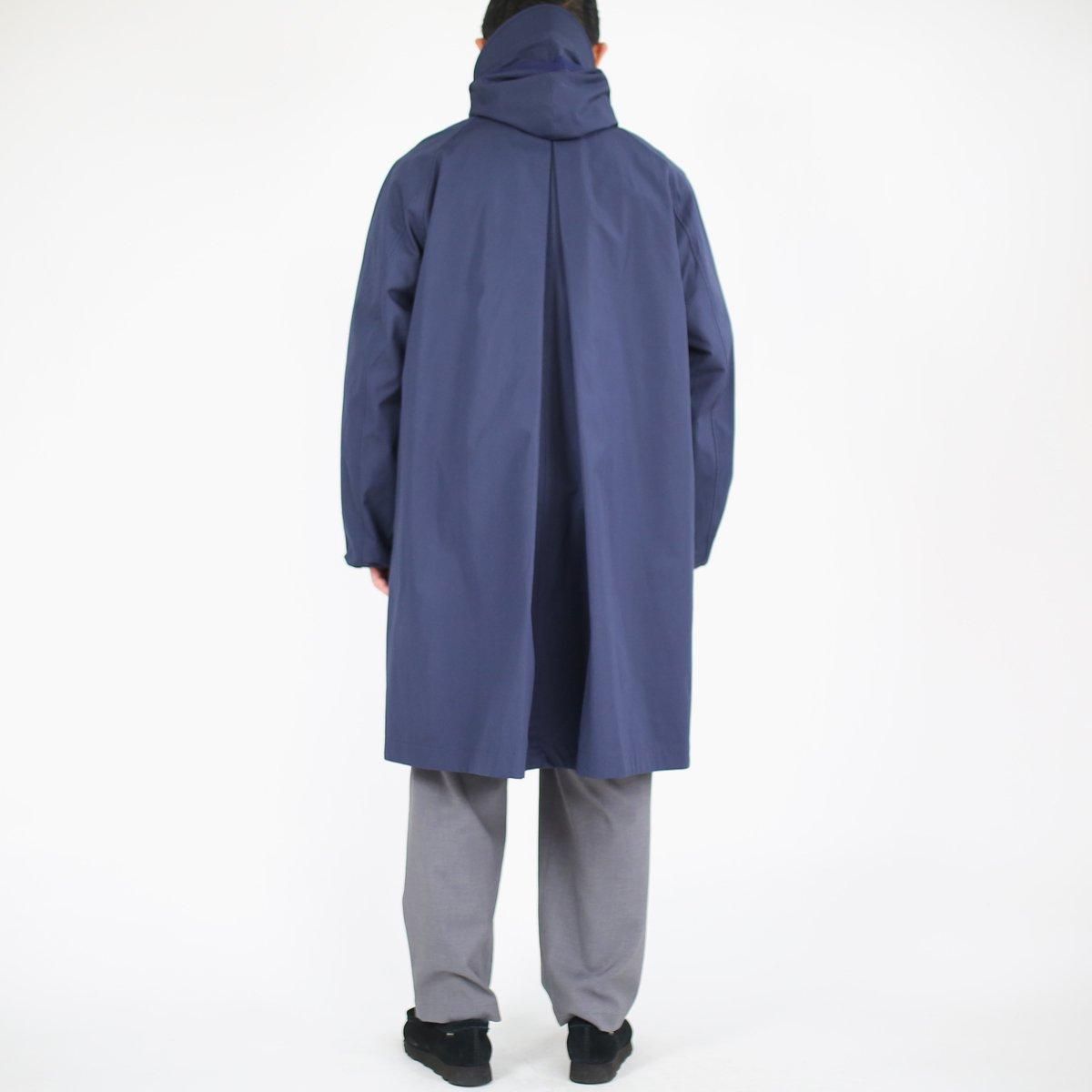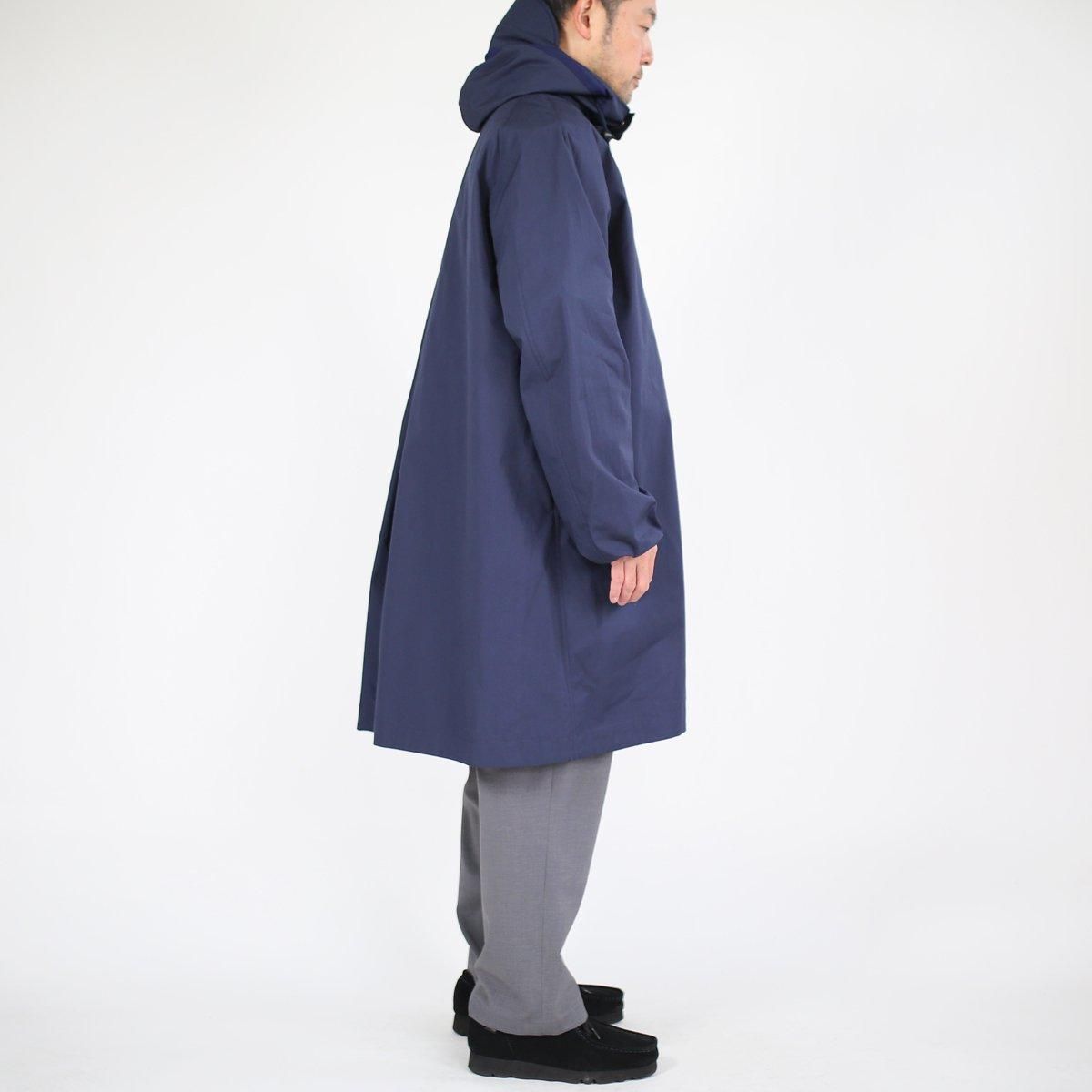 そしてもう1つこだわったのは、バッグを背負ったまま羽織れる背中の仕様です。背中心に深いタックとることで、バッグを覆う分量と腕の運動量を確保しました。またシルエットも背中から裾にかけて綺麗なドレープしたAラインに見えます。