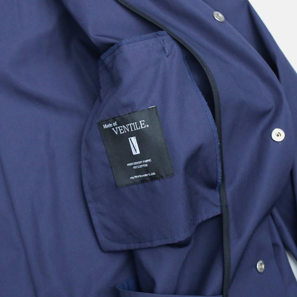 ベンタイルは、超極細の綿糸を限界まで打ち込み、織り密度を限界以上に上げて織った高密度の綿生地です。織りの密度の高さと天然の綿繊維の持つ"水に濡れると膨らむ"という特性により防水・撥水効果を発揮します。綿素材でありながらしっかりとした風合いを保ち、通気性や透湿性と防水性や防風性を兼ね備えた素材。すなわち、外からの水を遮断し、内からの蒸れは外へ逃がす優れた特性を持っているということです。