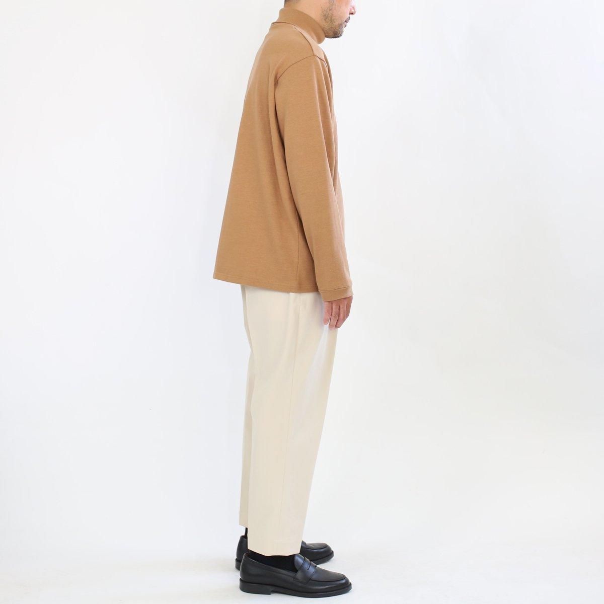 サイズ感は全体的に少しコンパクトに微調整しましたが、程よいゆとりあるサイズ感は変わらず、インナーとしても1枚で着ても良いシルエットです。