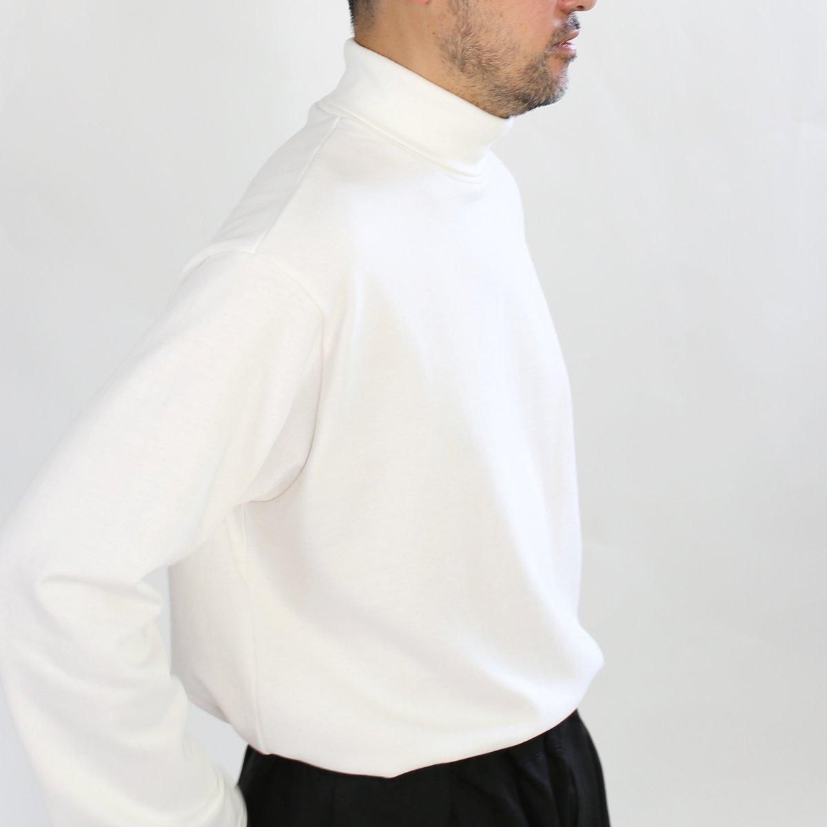 ウールのタートルネックも良いですが、気兼ねなく洗濯できるコットン素材は、買い足してストックしておきたいアイテムです。