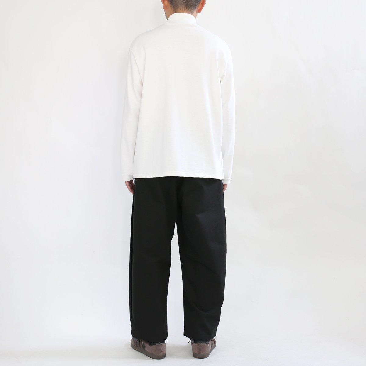 サイズ感は全体的に少しコンパクトに微調整しましたが、程よいゆとりあるサイズ感は変わらず、インナーとしても1枚で着ても良いシルエットです。