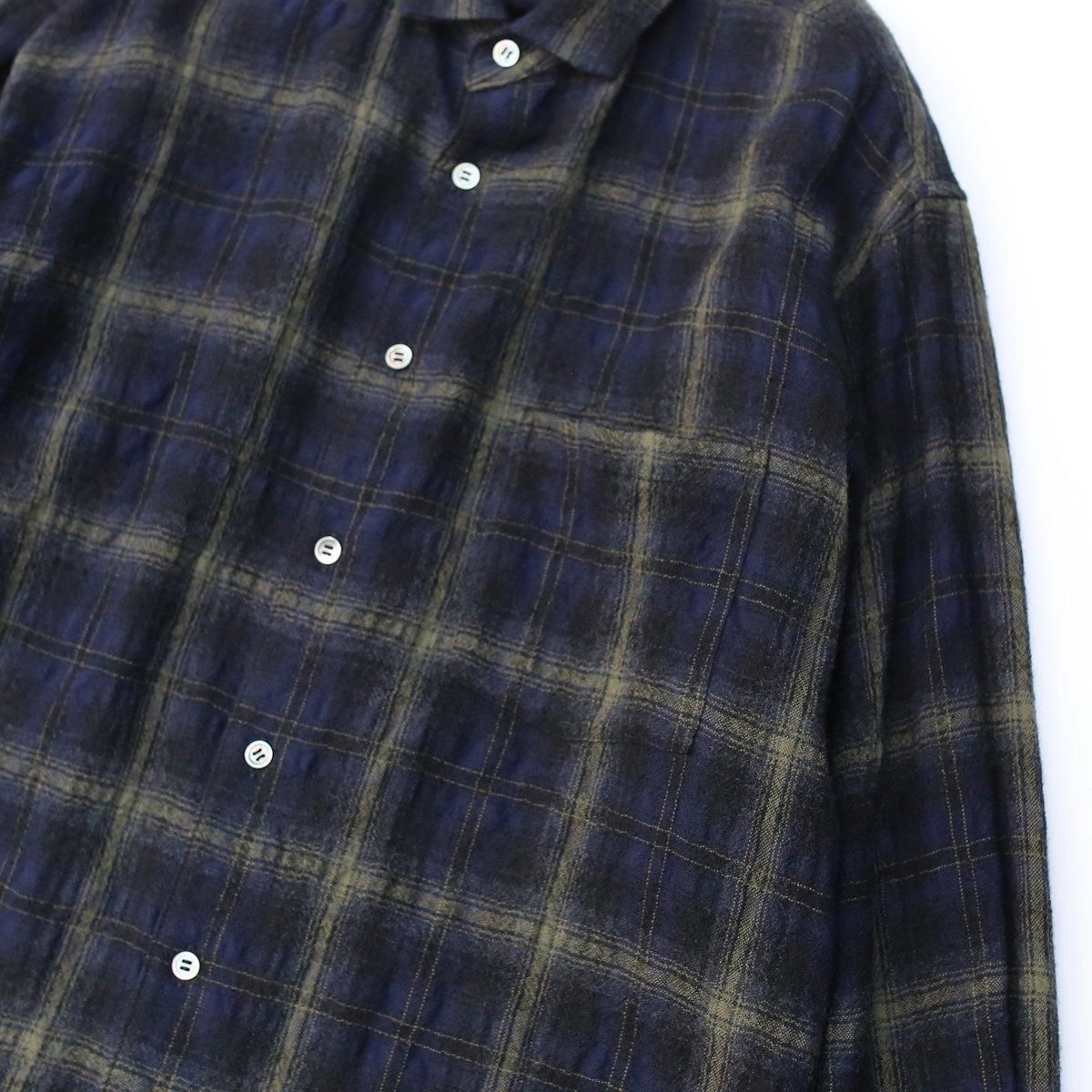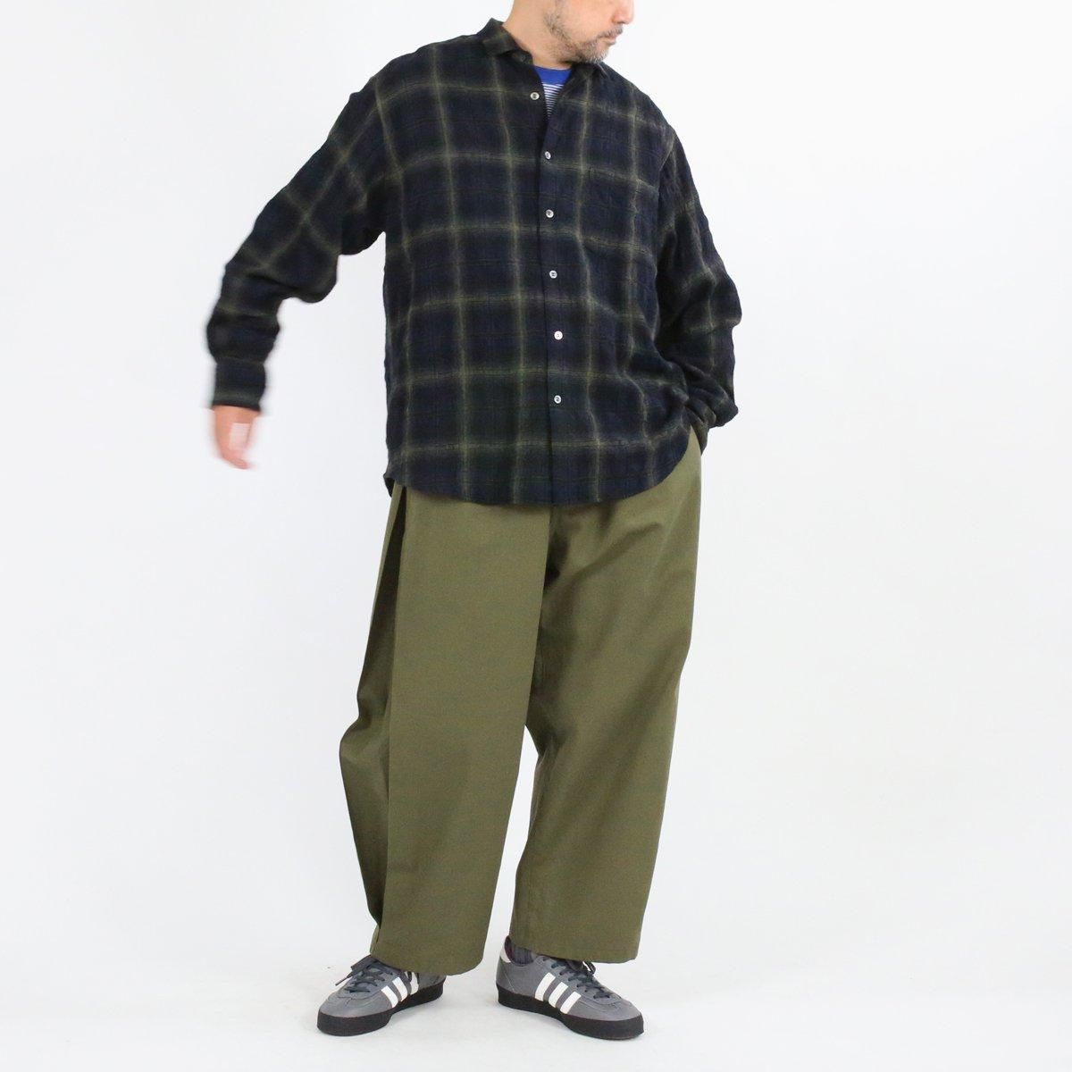 EEL Products定番、 "コンカラシャツ" をウールコットンのガーゼ生地で別注し直営店限定で販売いたします。