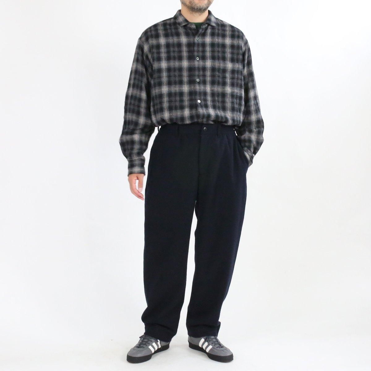EEL Products定番、 "コンカラシャツ" をウールコットンのガーゼ生地で別注し直営店限定で販売いたします。