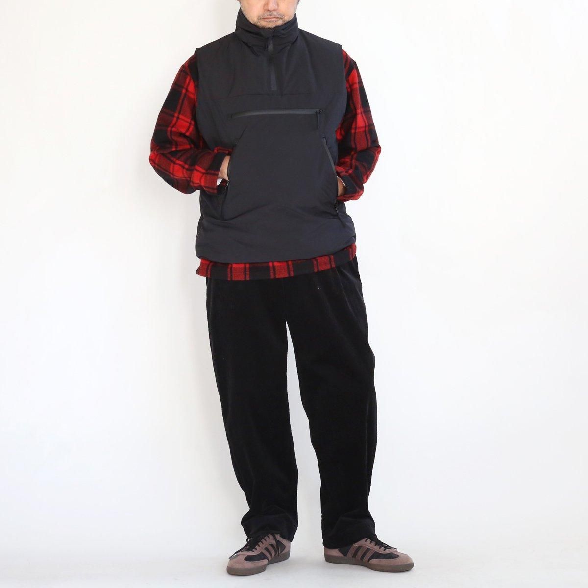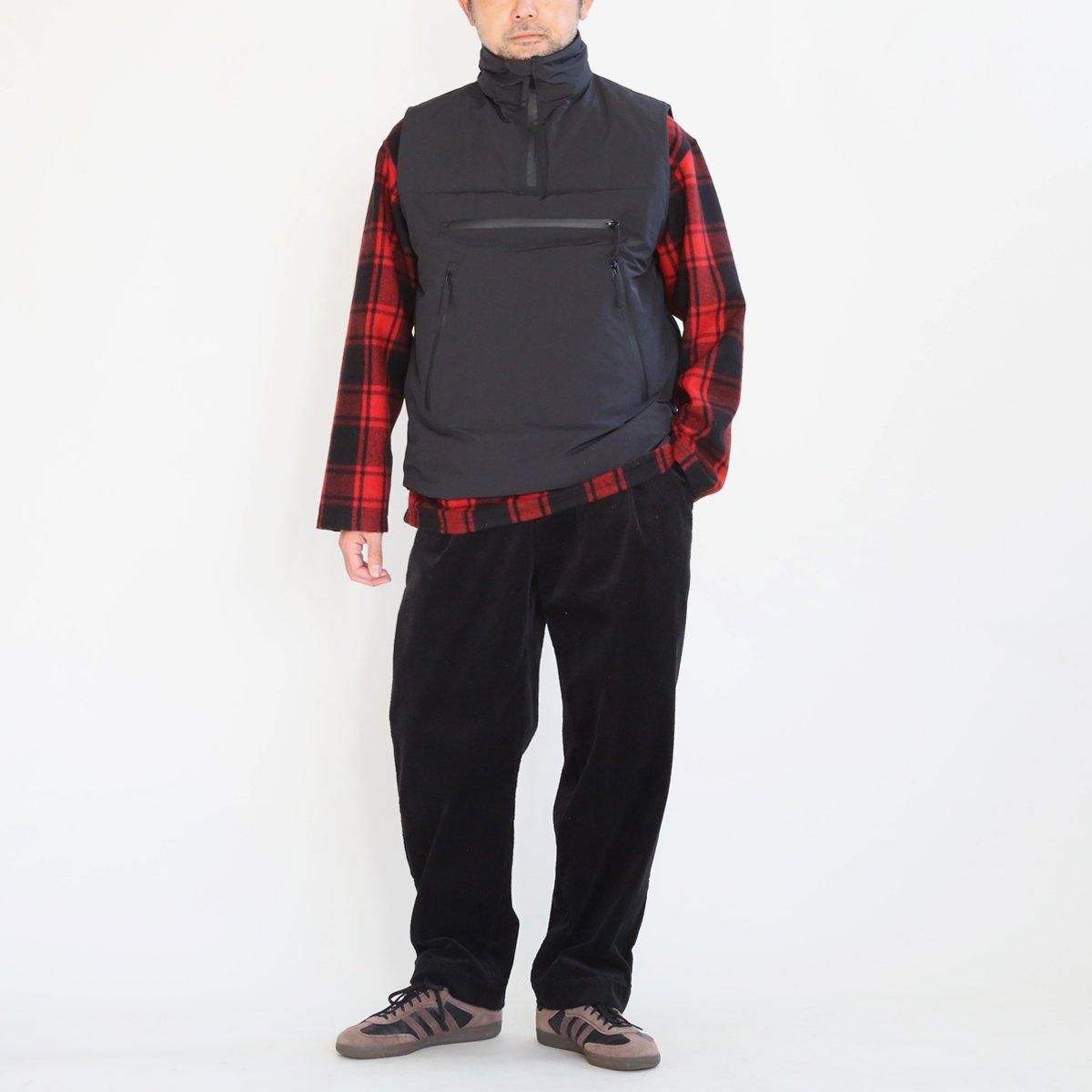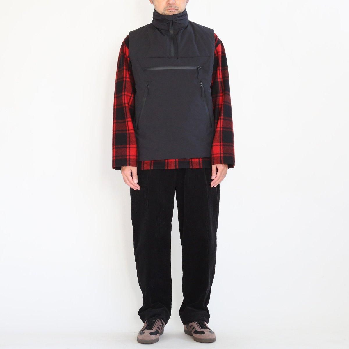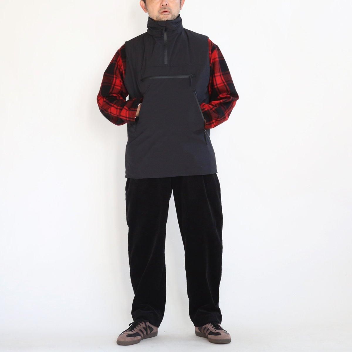 イギリス軍を代表するアイテム「PCS Thermal Smock」を見直し、ベストへアップグレードした一着。オリジナルに忠実なショート丈やサイズ感はそのままに、表生地をEEL Productsオリジナルファブリックのポリエステル/ナイロンを使用し別注。 張りのある独特の風合いと光沢のないマットで落ち着いた生地感が特徴。軽さの中に強度と耐久性をもち、撥水性も兼ね備えています。