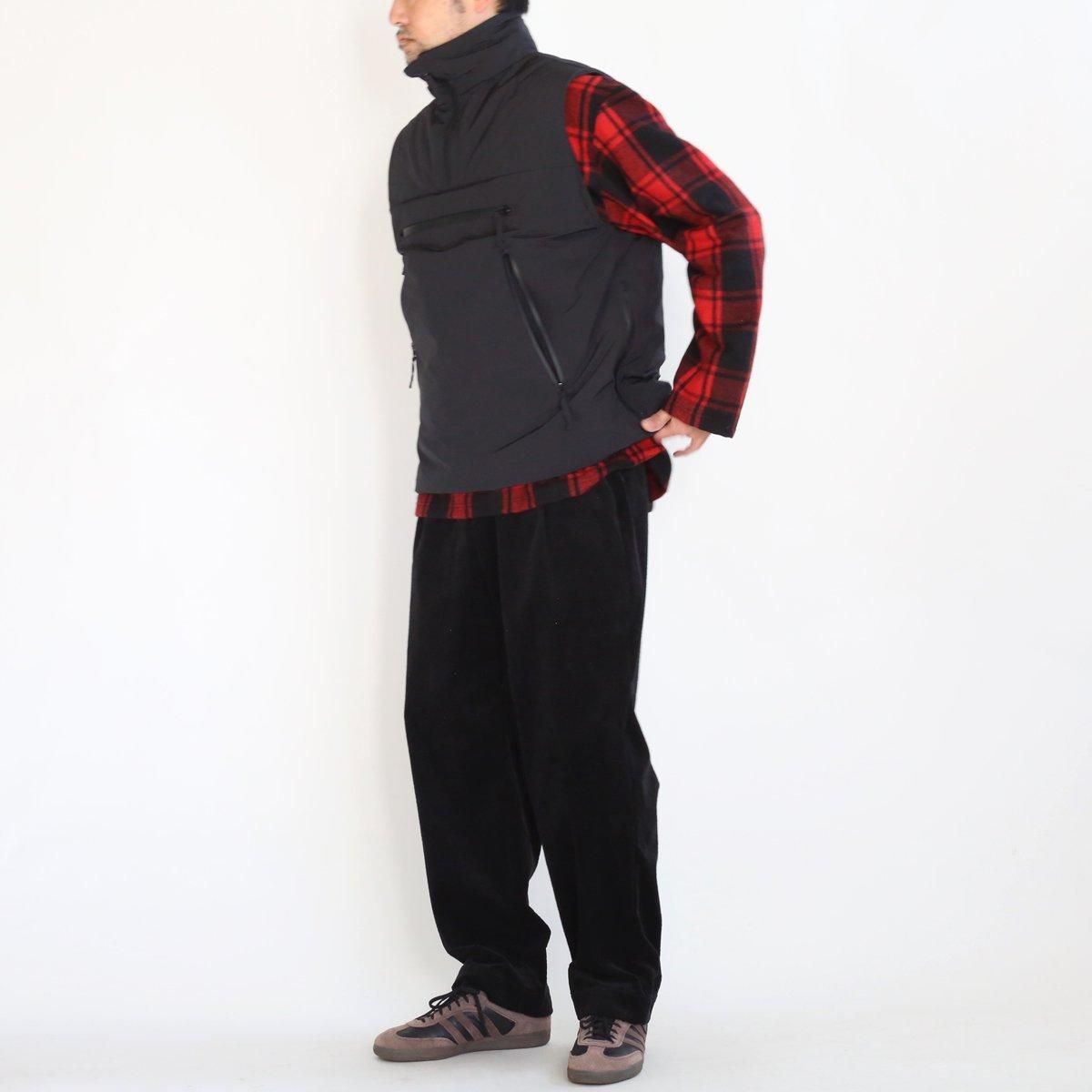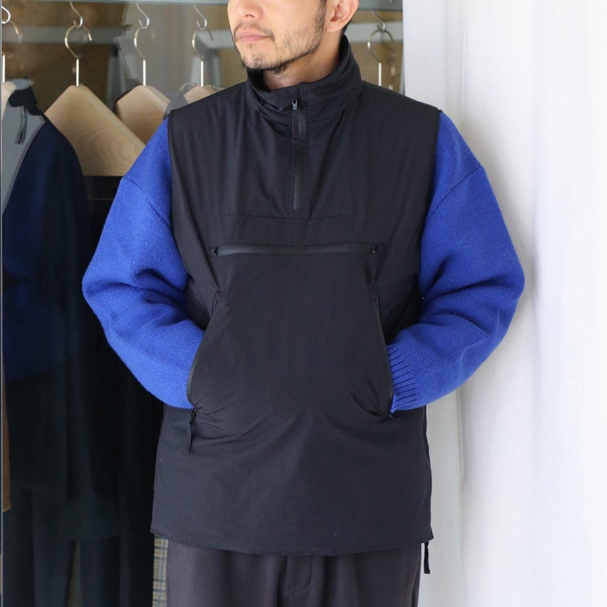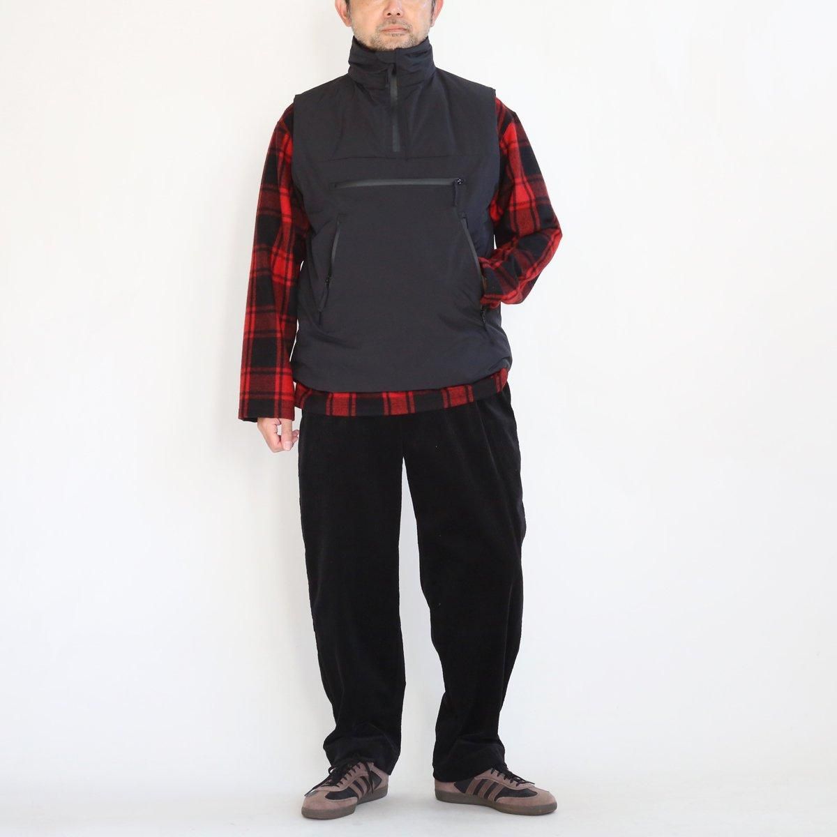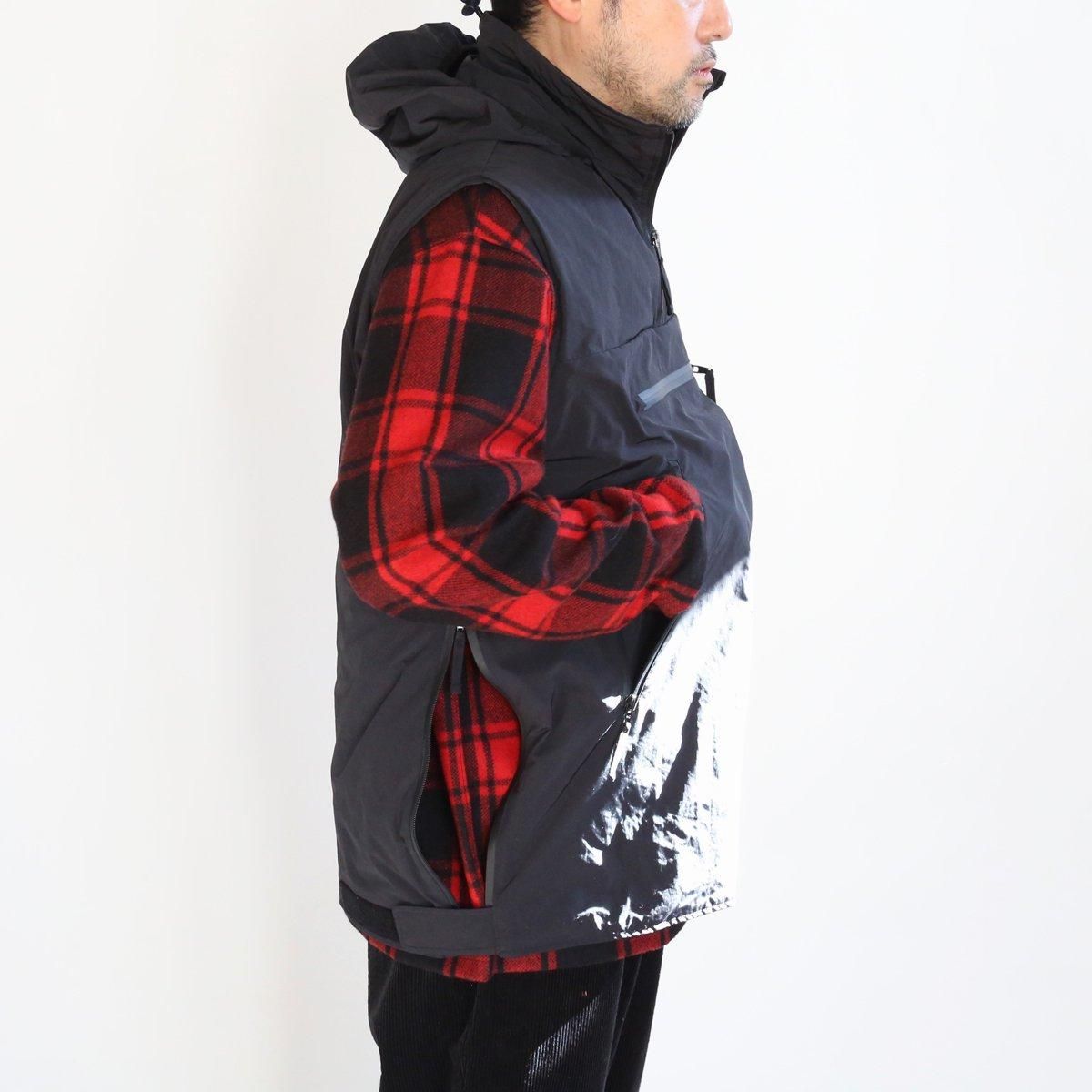 イギリス軍を代表するアイテム「PCS Thermal Smock」を見直し、ベストへアップグレードした一着。オリジナルに忠実なショート丈やサイズ感はそのままに、表生地をEEL Productsオリジナルファブリックのポリエステル/ナイロンを使用し別注。 張りのある独特の風合いと光沢のないマットで落ち着いた生地感が特徴。軽さの中に強度と耐久性をもち、撥水性も兼ね備えています。