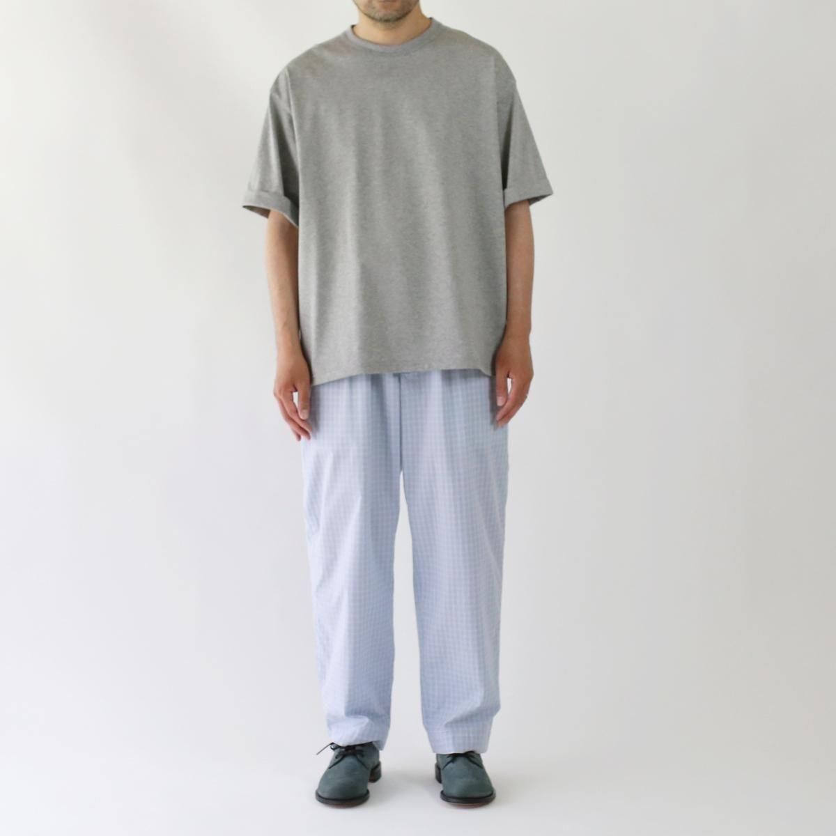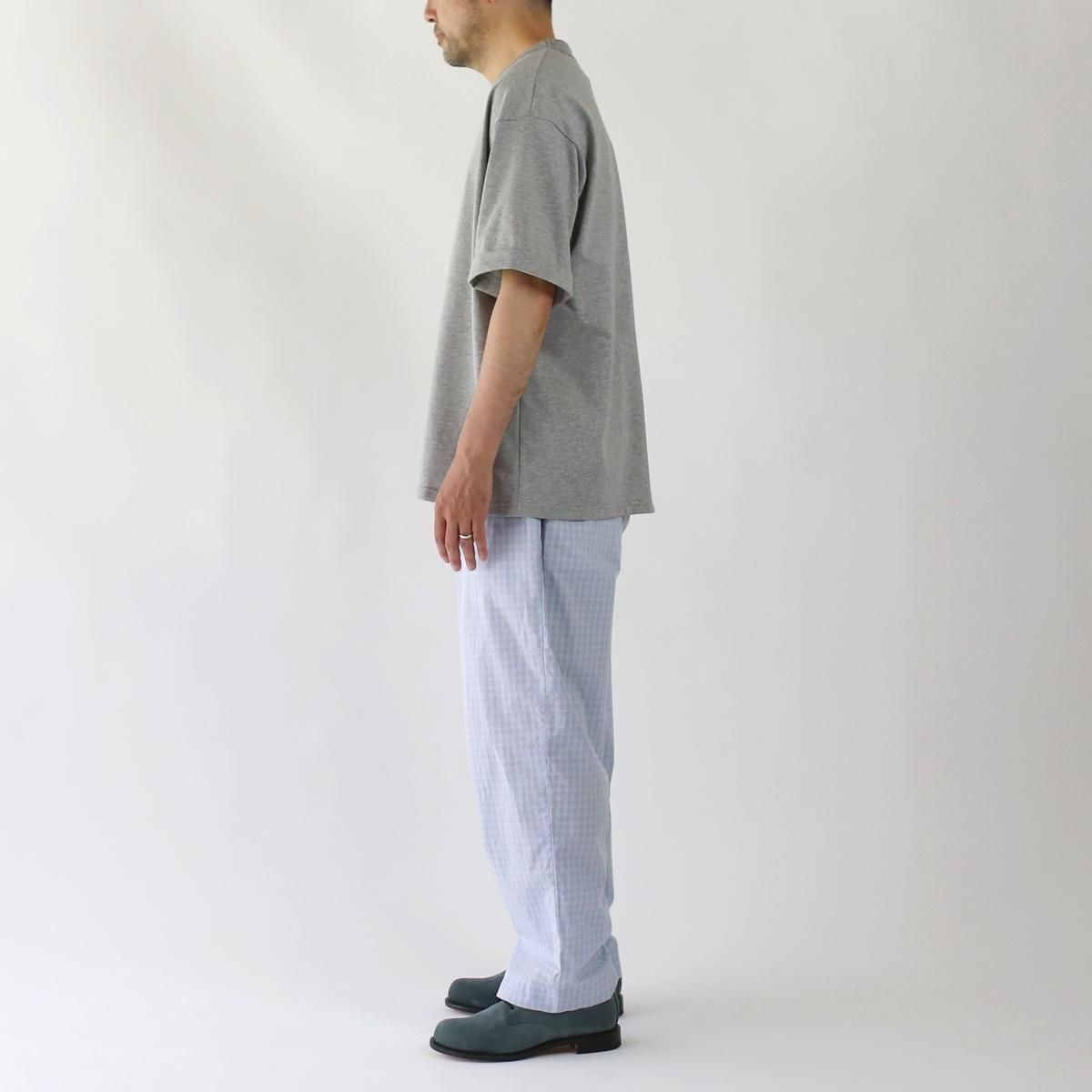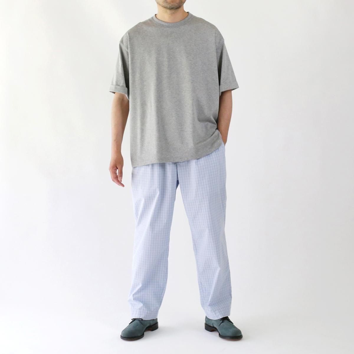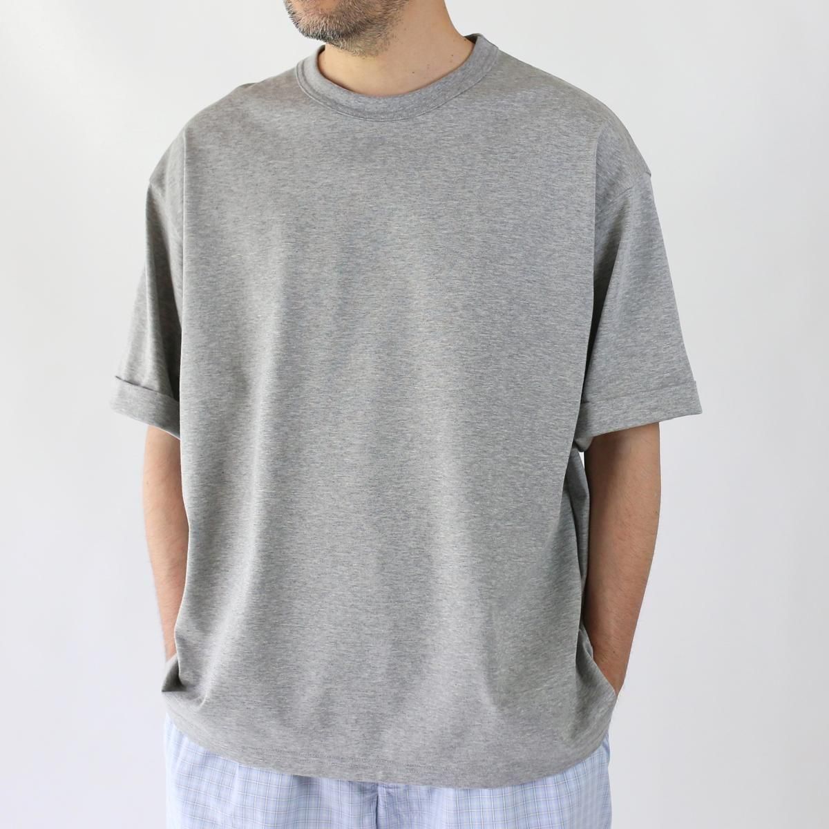 中肉厚のプレーティング天竺を使用。度目を詰めた張りとコシが特徴で、滑らかな肌触りが心地よい素材です。