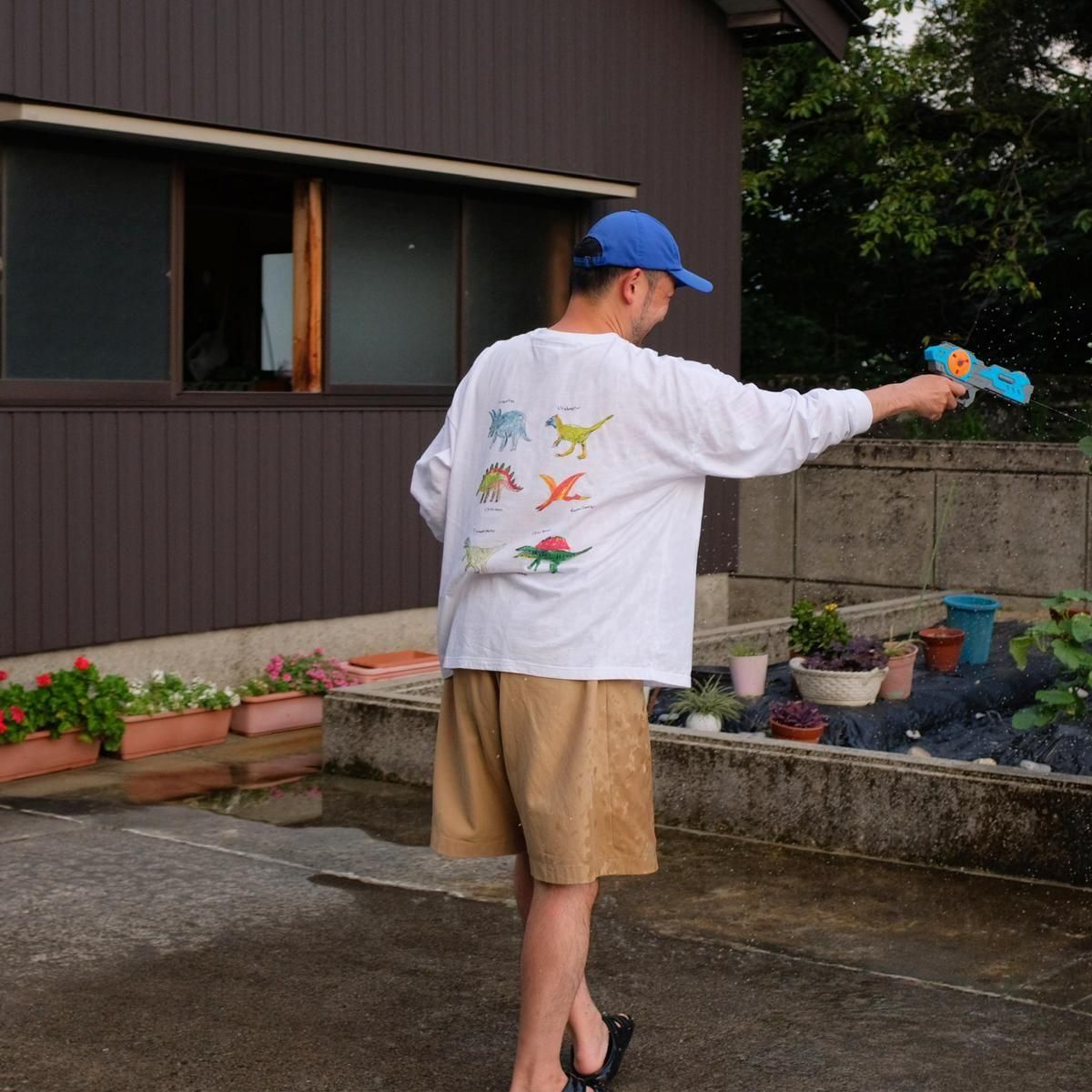 ヒラノトシユキ Dinosaur L/S White