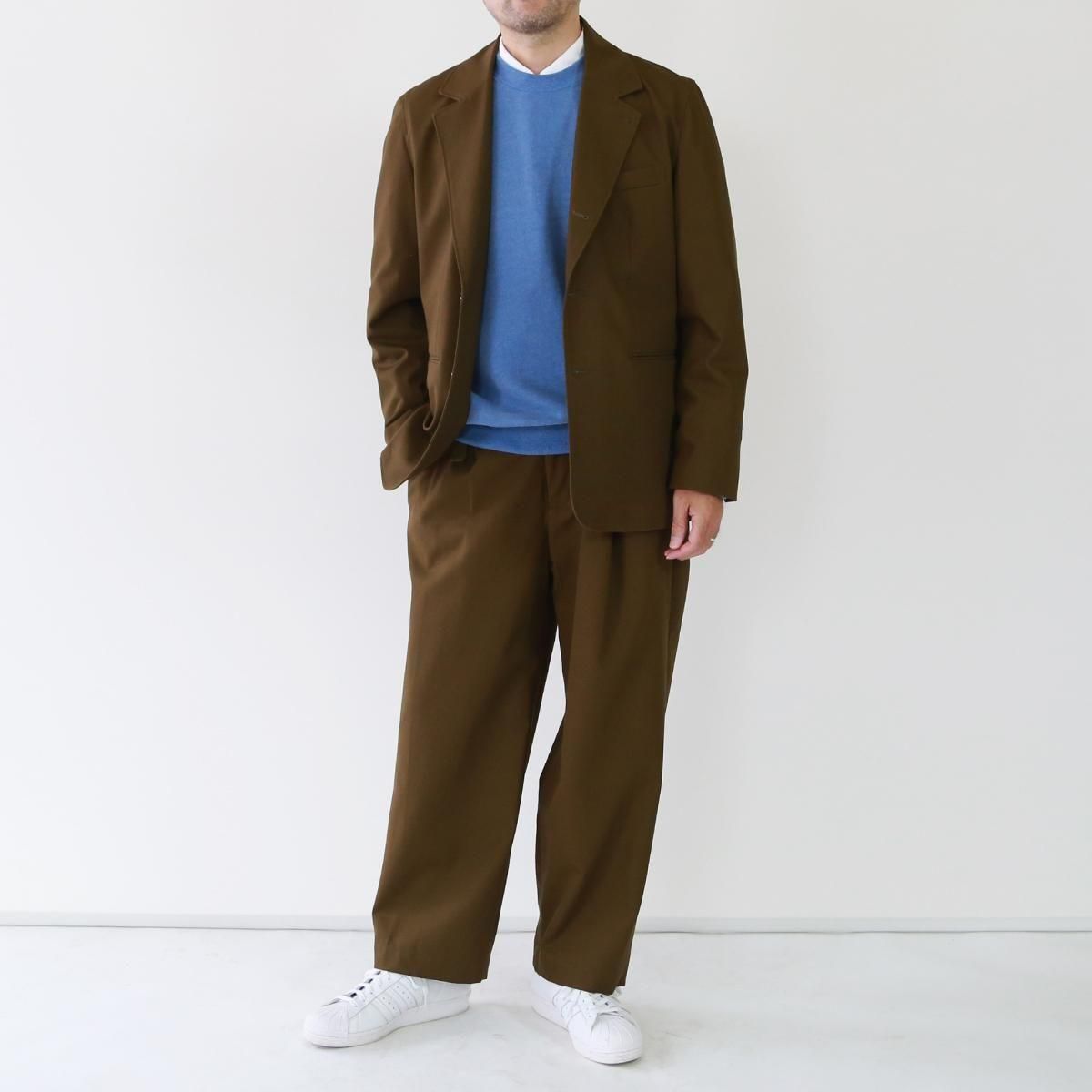 セットアップの着用は、インナーを変えることでカジュアルはもちろん、ビジネスやフォーマルのシーンでも着てもらえます。単品使いもできますが、セットアップで持っておくと、急なきっちりしないといけない時にあると便利なアイテムです。