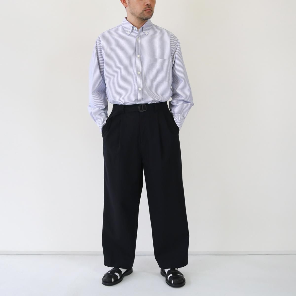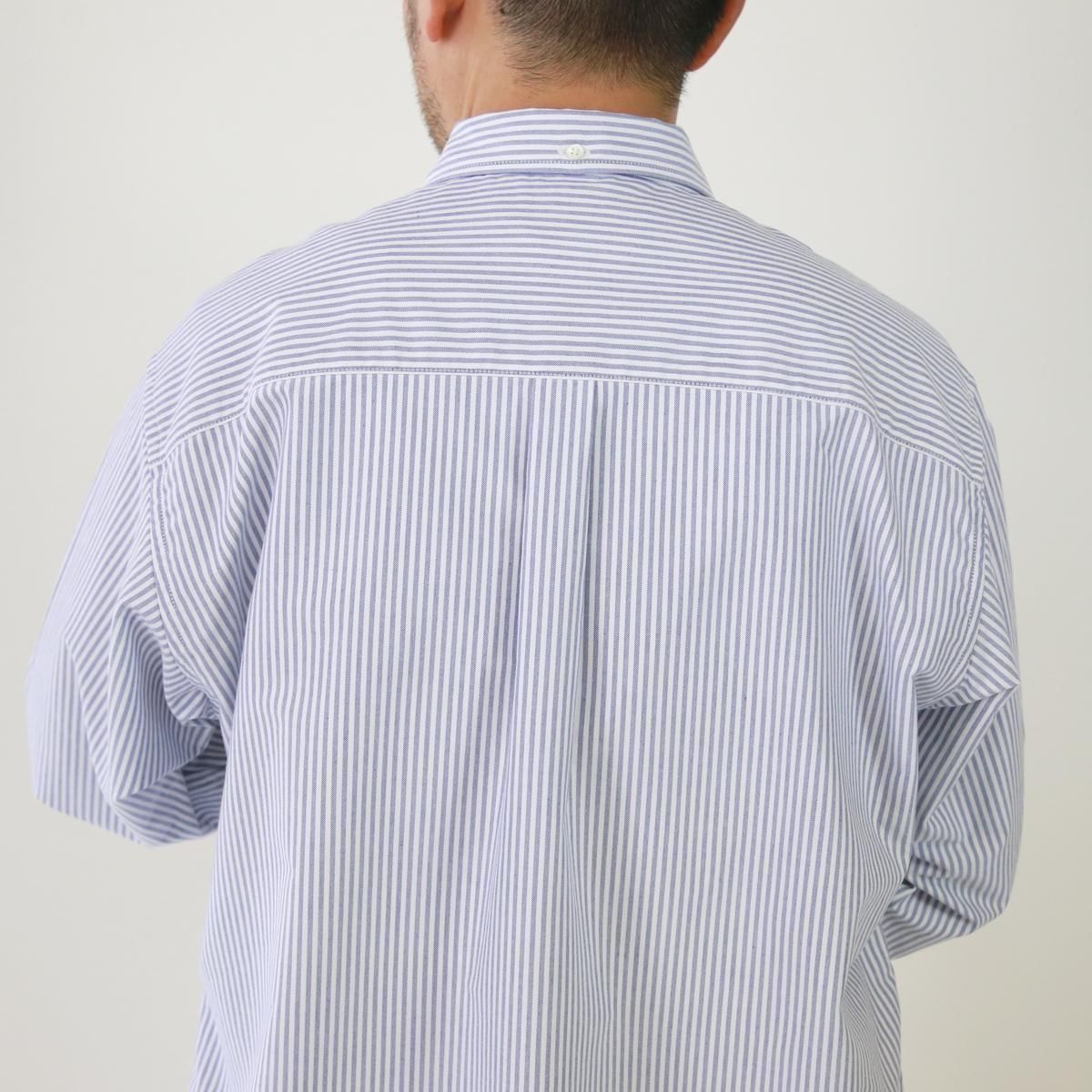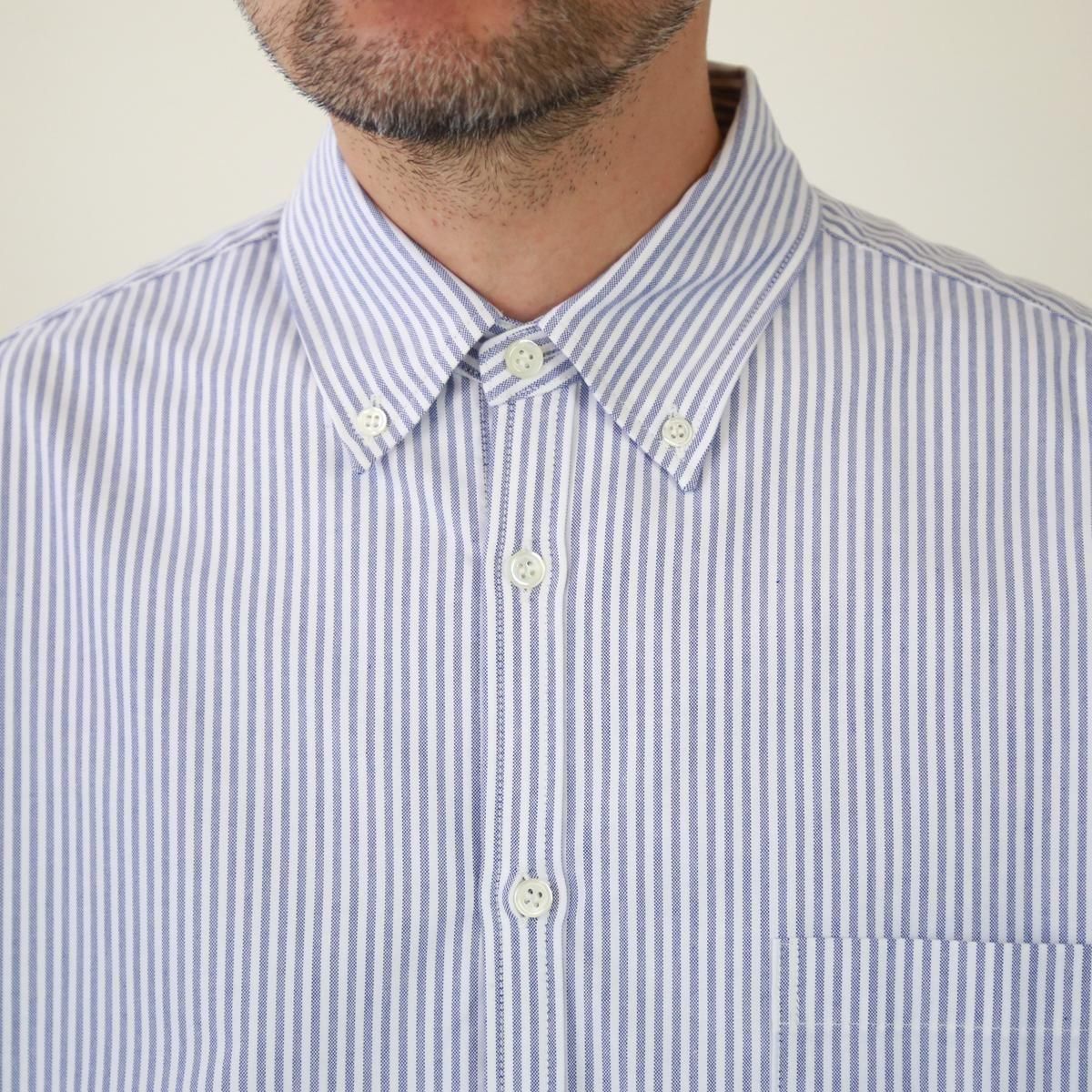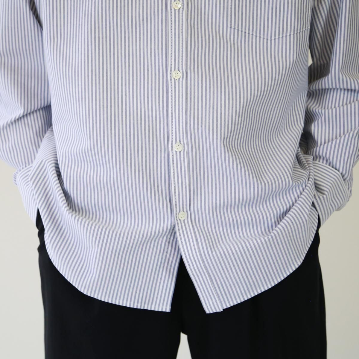 ボタンダウンシャツの顔となる襟は、クラシックなロールをやや抑えています。また、台襟、前立てもコンパクトにして、現代的なボタンダウンシャツへとアップデート。身幅にゆとりはありますが、大きすぎない品のあるサイズ感です。